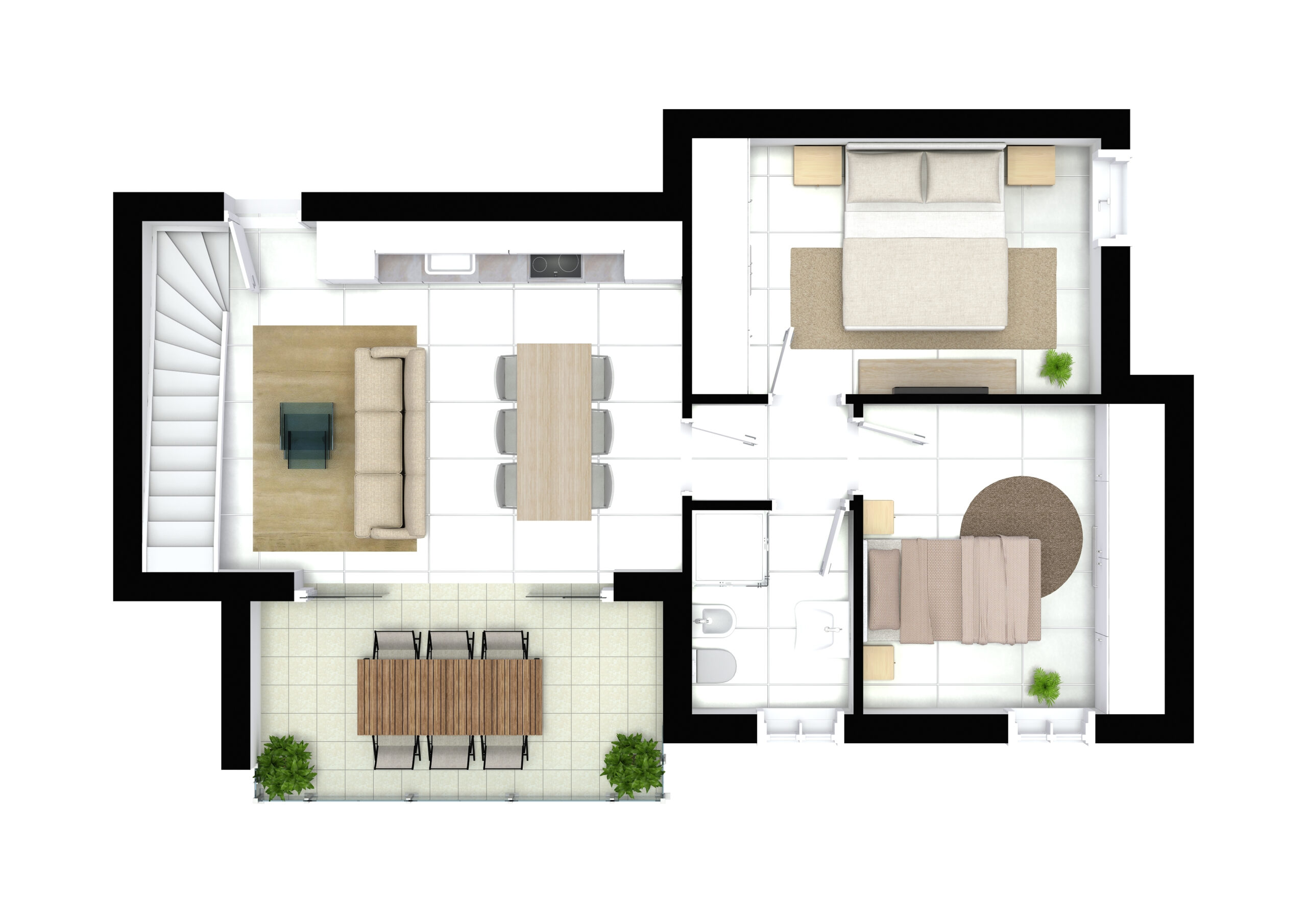 Spaziosa terrazza solarium ad uso esclusivo da personalizzare.