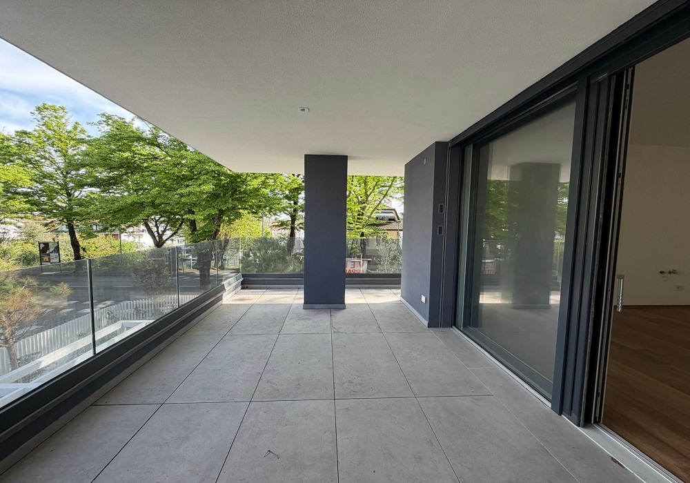 Le ampie vetrate scorrevoli danno accesso diretto ad uno splendido terrazzo abitabile in parte coperto: uno spazio ideale per cene all'aperto o momenti di relax immersi nella tranquillità del verde circostante.