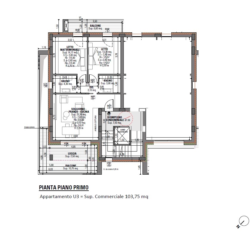 L'appartamento è composto da un'ampia zona giorno openspace molto luminosa con soggiorno e cucina a vista con predisposizione per piano cottura a induzione.
