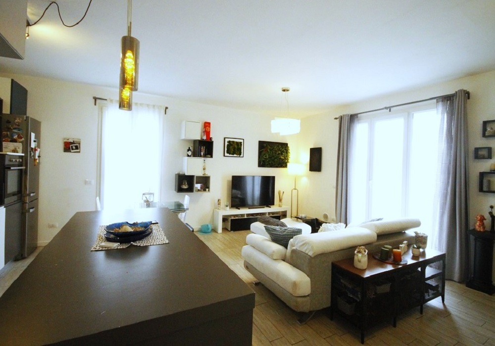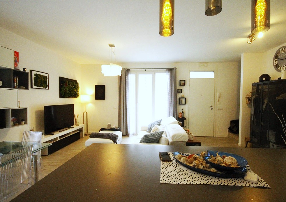 L'immobile si sviluppa su tre livelli: al piano terra, l'ingresso dal giardino privato conduce ad un ampio e luminoso soggiorno con cucina a vista ideale per momenti conviviali in famiglia o con amici. Sempre sullo stesso livello troviamo un comodo bagno con antibagno.