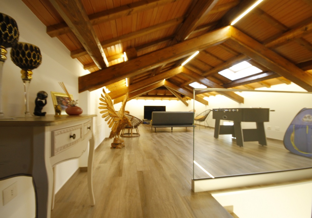 Da elegante scala interna raggiungiamo il piano superiore mansarda dove ci accoglie un secondo living, camera matrimoniale e secondo bagno, completa la proprietà un comodo garage;