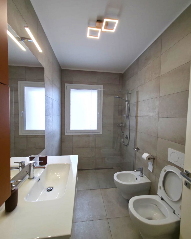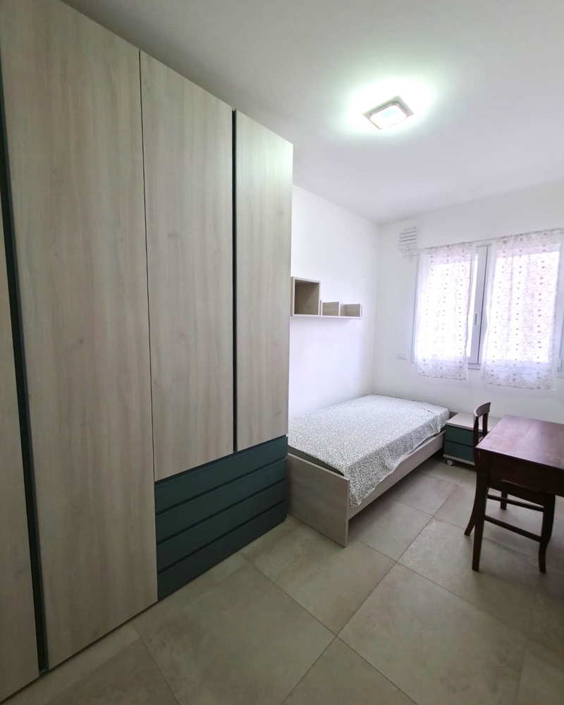 La zona notte si compone di una camera matrimoniale molto luminosa con accesso al balcone, una cameretta ed il bagno finestrato che presenta finiture molto gradevoli e moderne.